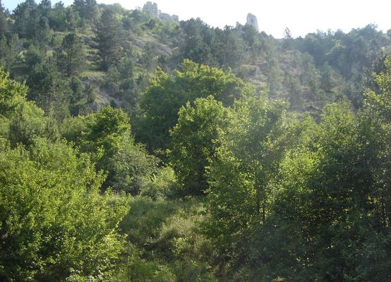 Unfortunately, Čachtice is not a major tourist hotspot. In fact, it was not pointed out at all on the road. After driving around the countryside for a good hour, strategically but painfully slowly homing in on it, we finally found a tiny signpost indicating a hiking trail toward the castle. Perfect! We would park right there, at the beginning of the trail, and hike through the forest. The sign said "350 m / 30 min". Hm, half an hour for not even half a kilometer? We can easily do four kilometers an hour without breaking a sweat. Confident of our lung power, we set out up the hill at a brisk speed. The first five minutes were a piece of cake. We enjoyed the overgrown meadows and warm, fresh morning air. We even got a glimpse of the castle, high up on the hill, from time to time. After five more minutes we started to wonder whether the "350 m" referred to metric metres. Maybe Slovakia had a different kind of metric system? Apparently, in Sweden 1 mile denotes 10,000 m, not 1,600 as in the rest of the world. So maybe 350 m really meant 3,5 kilometers? Had Slowakia ever been colonized by Swedes?