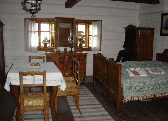 The museum grounds were easily as vast as a small village. There were original houses, barns, a smithy, bakery, school, church and many more buildings, taken from villages in the area and rebuilt there to give an accurate impression of life in a 19th century Slovak village. There was even a fire department with an old fire engine. Farm animals were strolling around and the visitors were allowed to enter each building and inspect the furniture, drapes, crockery, utensils and tools of the former inhabitants. It was quite a trip into old history, and we enjoyed it immensely. Gives you plenty of ideas for gothic stories.